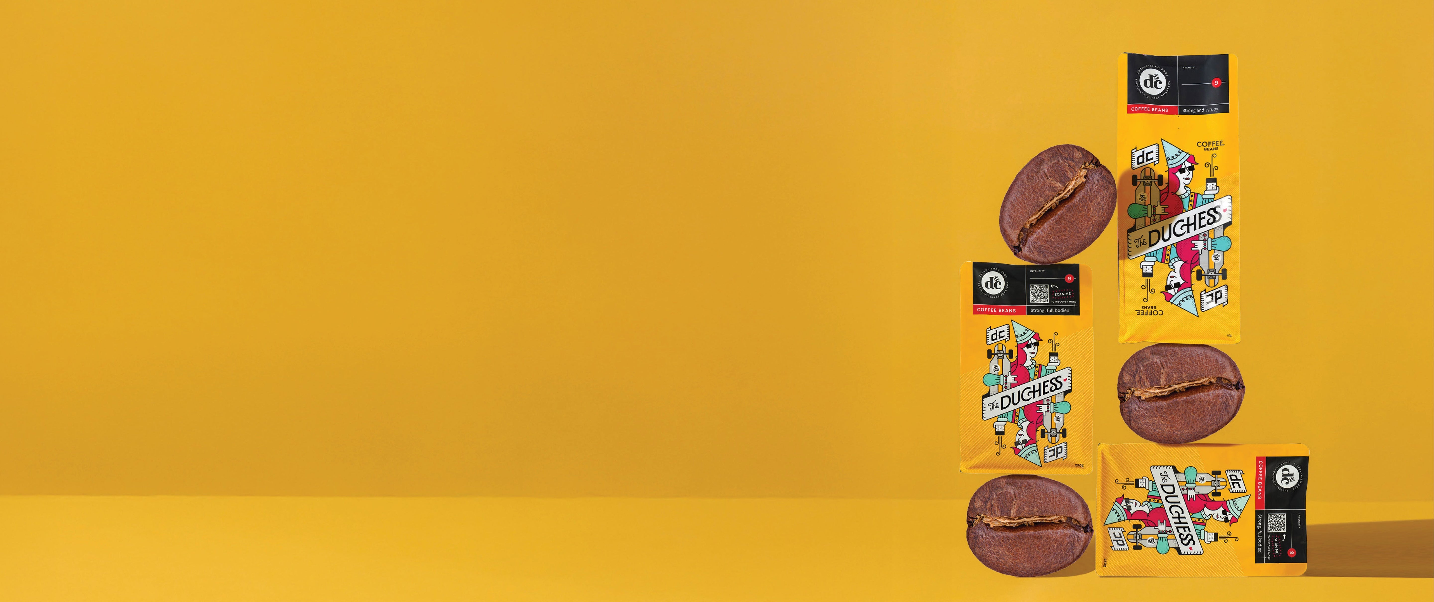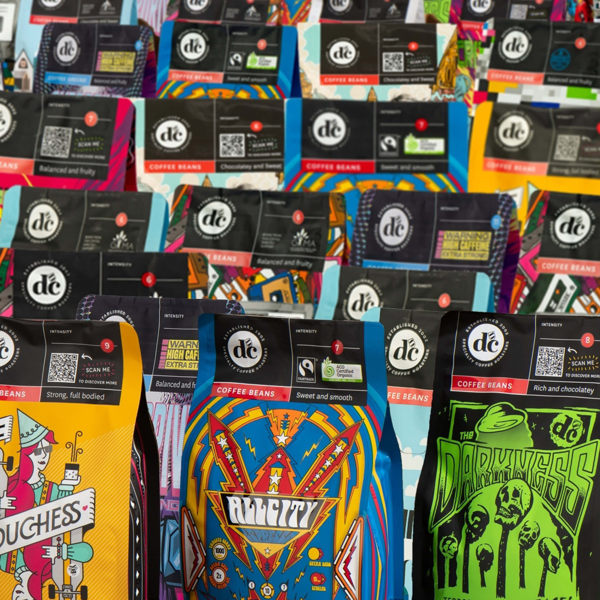 Our coffee bags became full-blown canvases. From Darkness to Critical Hit, each blend got its own illustrated alter ego. Cafés started showing them off like vinyl sleeves on a record store wall.