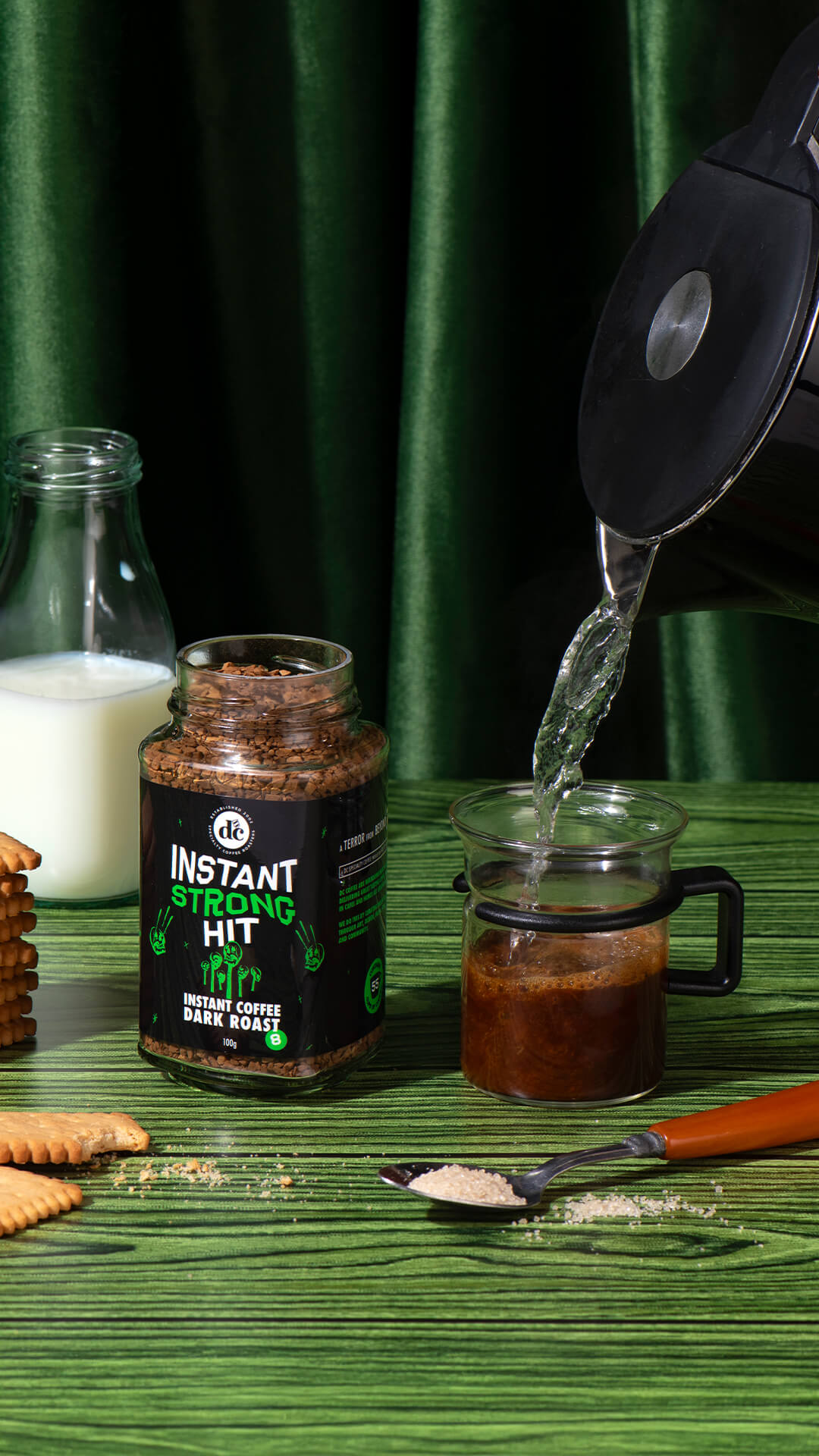 Sometimes time isn’t on our side, but that doesn’t mean the coffee has to suffer. It just needs to be instant. This Instant Hit is filled with strong, rich flavours without any nastiness. We’ve captured everything you love about premium coffee and just made it a little easier, and a little faster.