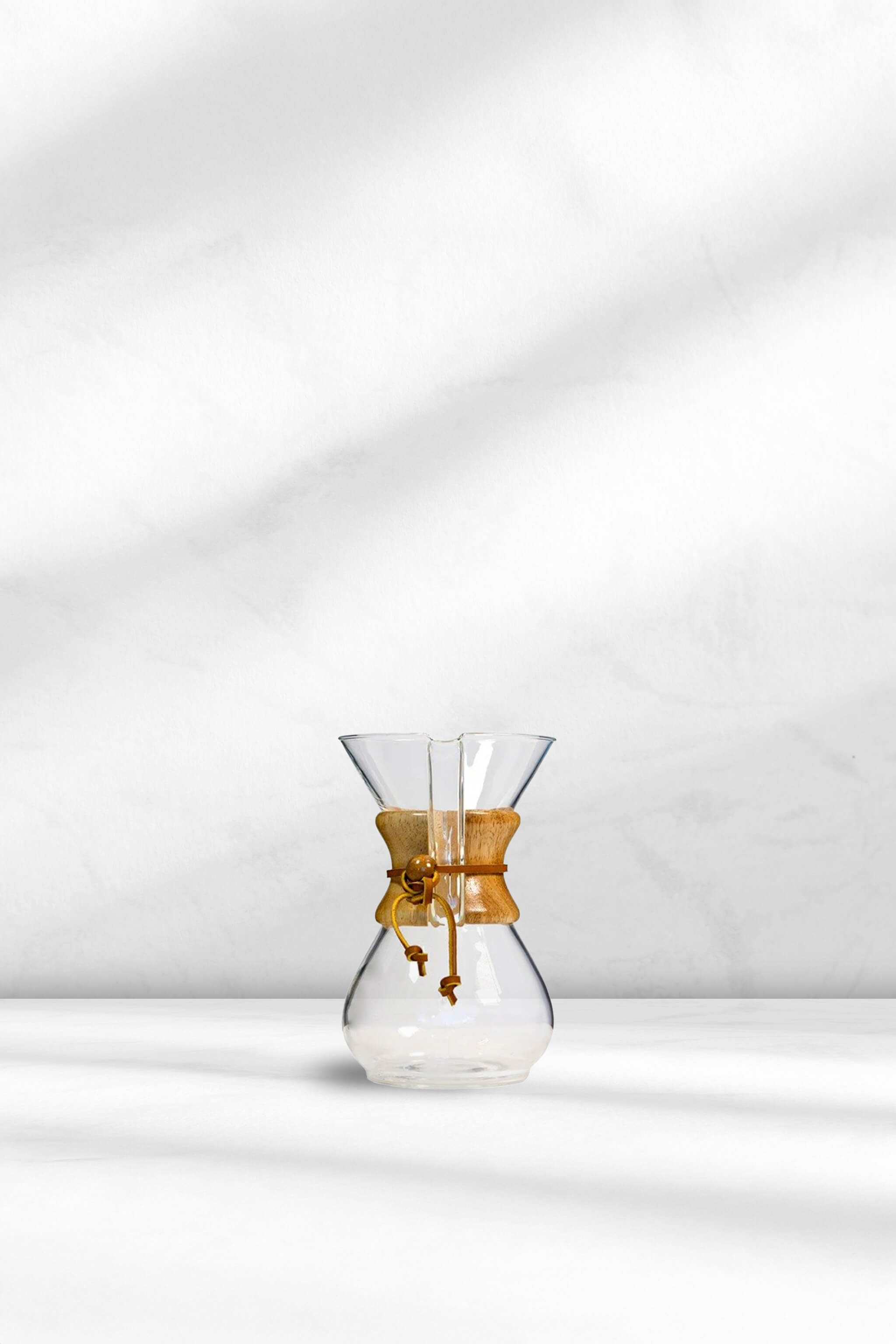 Chemex 3 cup brewer has a 450ml capacity and brews around 1-3 cups of delicious filter coffee.