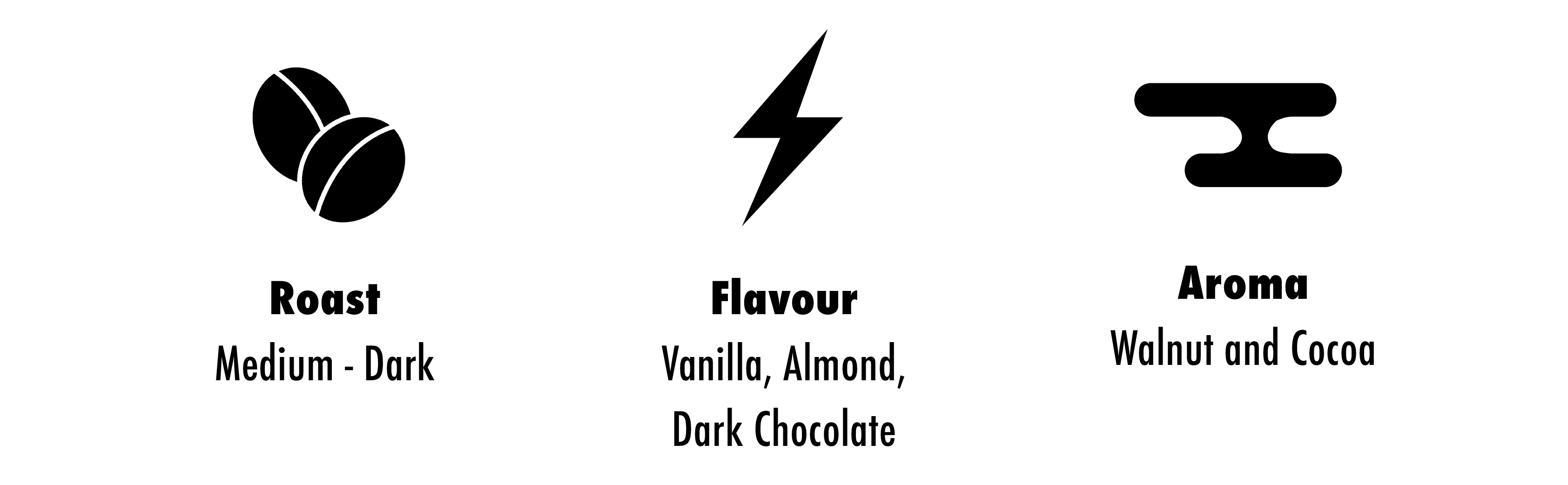 The Darkness is bigger and bolder than anything you've had before. Full-bodied madness that will (not actually) gamma ray your brain with a buzz strong enough for you to face the day. It celebrates a heavy, syrupy body, making it the perfect choice for a hard-hitting espresso with a full flavour of vanilla, almond and dark chocolate.