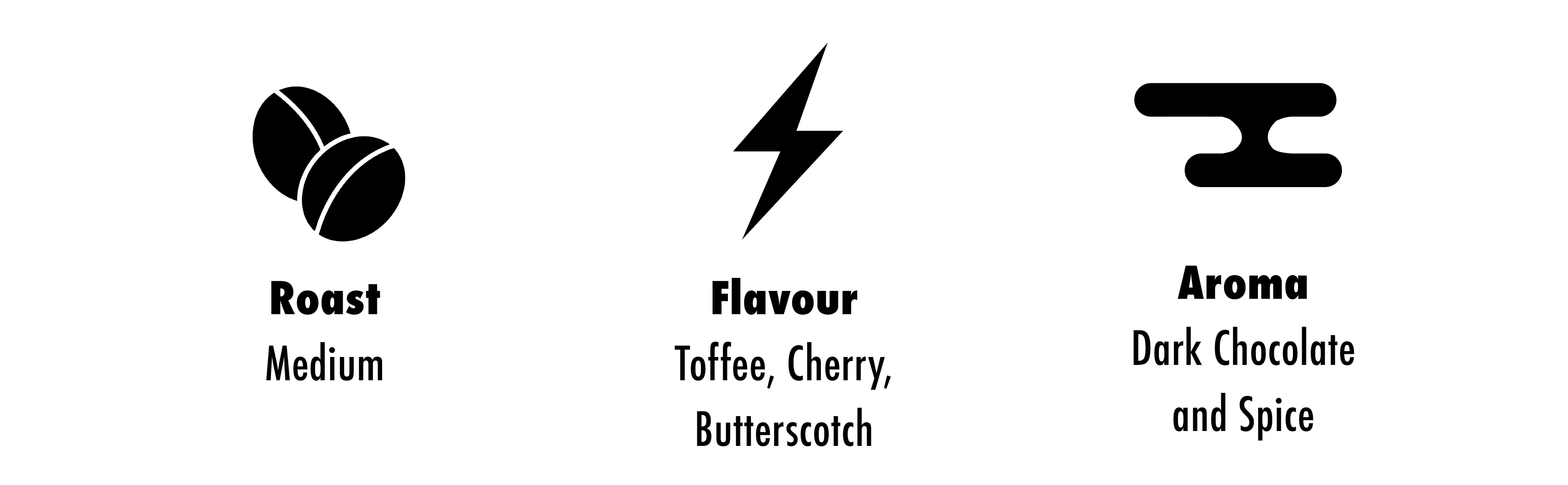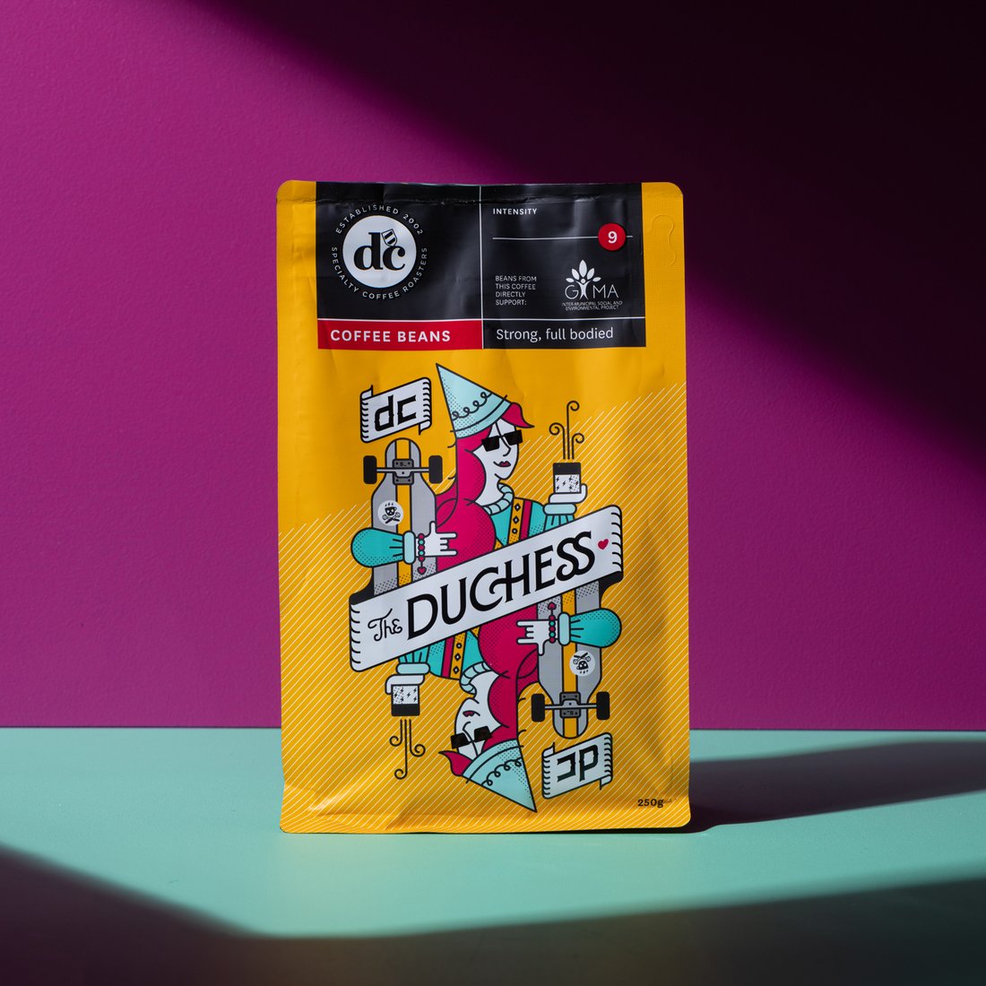The Duchess Blend is a strong and full bodied cup. This coffee will help you call the shots, it's powerful with beautiful toffee, cherry and butterscotch flavours.